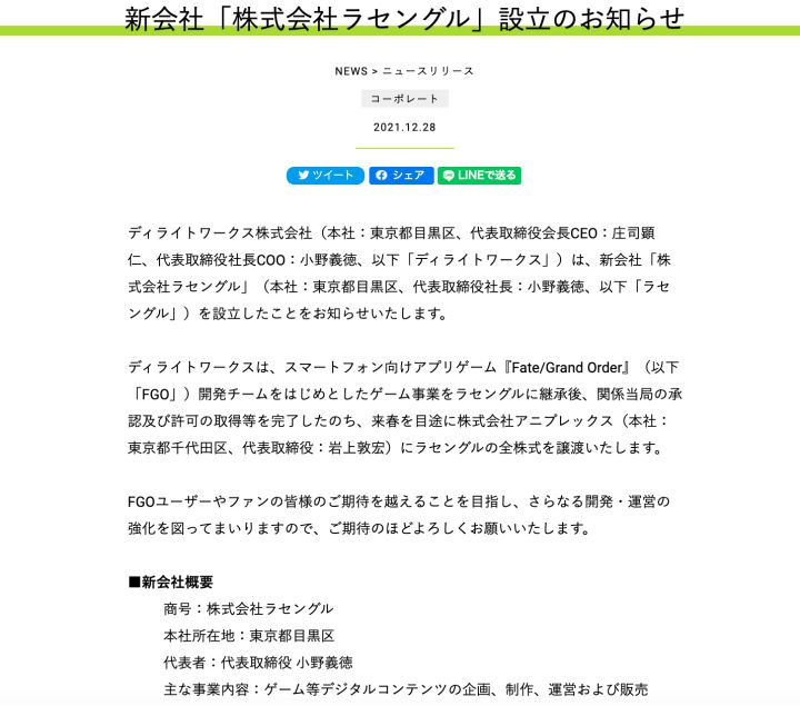FGO日服开发不再由DW负责,转入Aniplex旗下