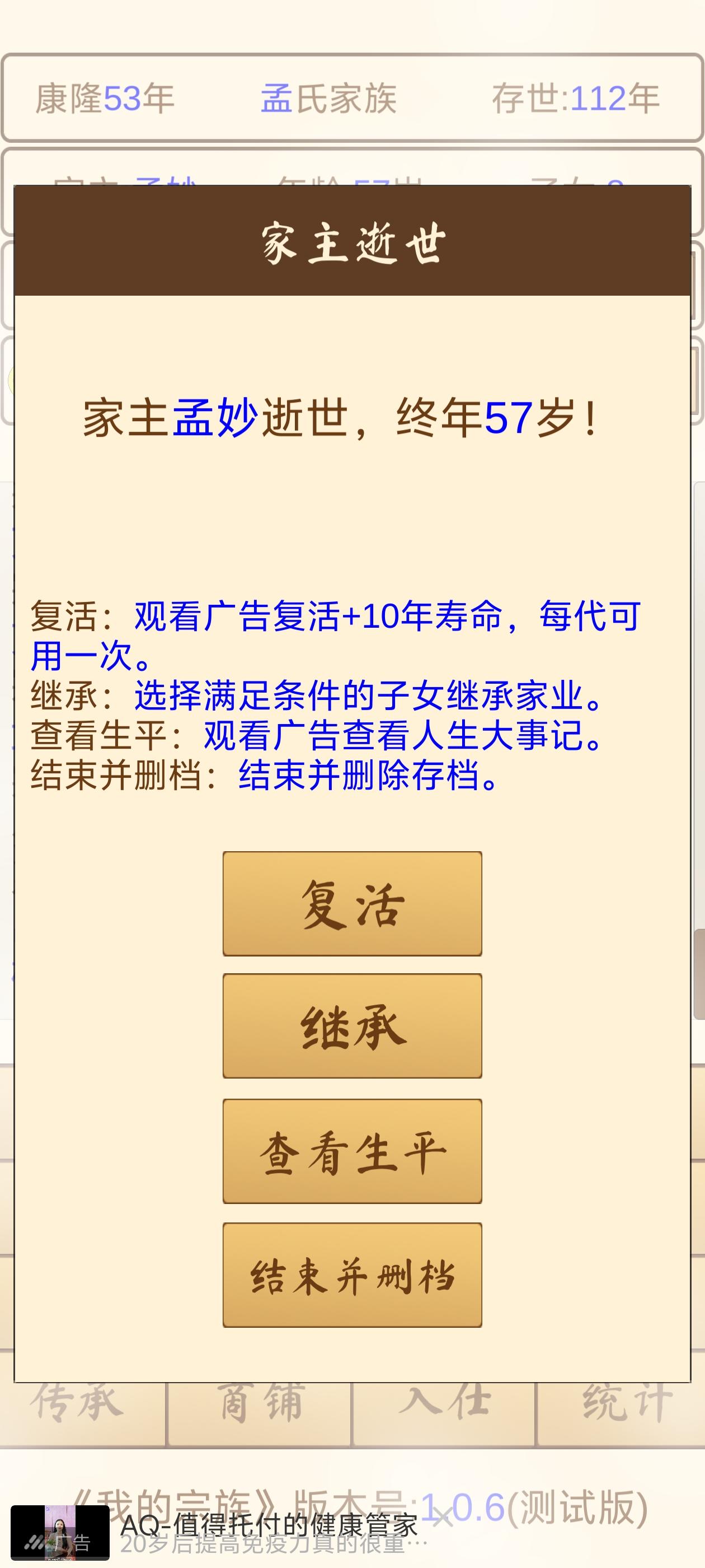 玩了一段时间,只能说一般般,好的一点就是不用看特别多的广告,但是内容太少了,就一个多小时多一点都玩了好几代了,就不能让主控不死吗?或死了不要可以继承让我继续玩,好不容易有了很多族人一继承全没了