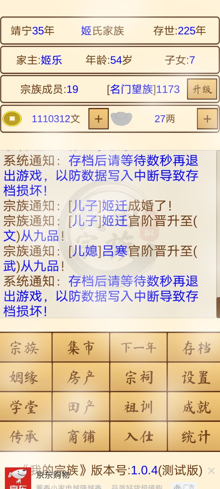 开局把田产买了,到后面把所有产业都给买了,我后随便按两下培养,和结婚就行。没什么意思,互动性太差了