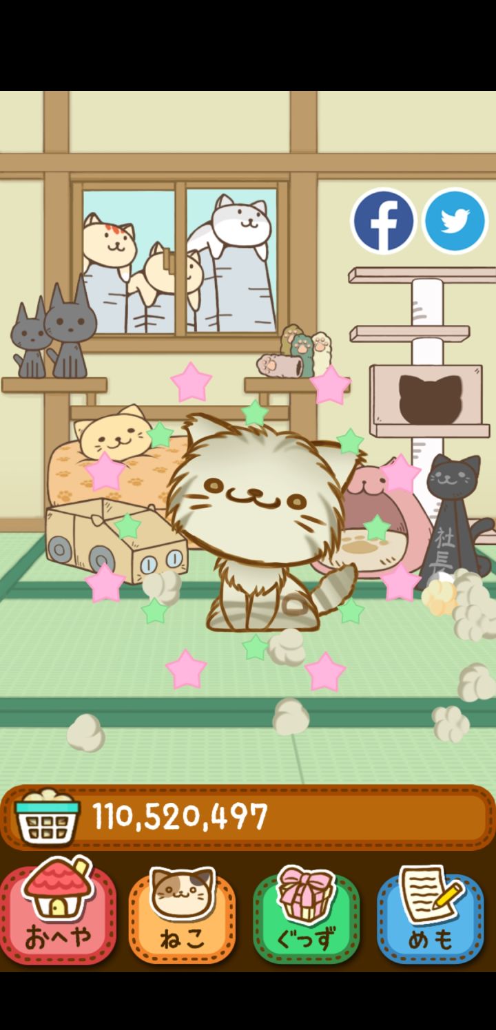 这是lz全开之后的截图,也可以算是通关了吧?猫猫和小玩意儿的全图鉴在另外两个集合贴里,欢迎大家围观嘛,玩法是比较单一的,不过每天撸撸猫其实很惬意主要有以下几点关于升级的心得首先说小玩意儿它们升级的数据是叠加的,满级100,生产一次有30s的CD且CD不通用前期小玩意儿的作用比猫猫大的多,随手升,不用犹豫玩到后面随着小玩意儿种类的增加,房屋里面是摆不全的不过呢,那些没有摆放出来的Bu