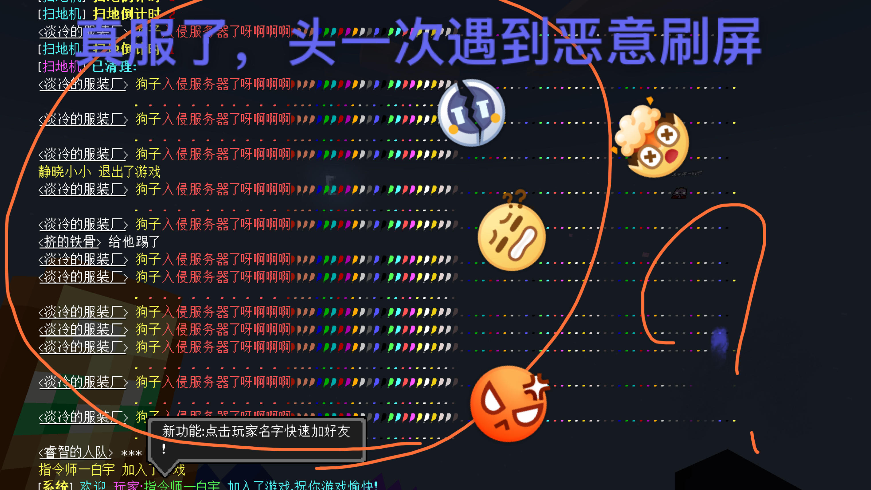 明明我们玩得好好的,结果就突然有一个人恶意刷屏刷的卡死了,就这个叫淡冷的服装厂的.啊啊啊啊啊啊啊我的合金套啊[表情_泪目][表情_泪目][表情_泪目][表情_裂开] #我的世界移动版