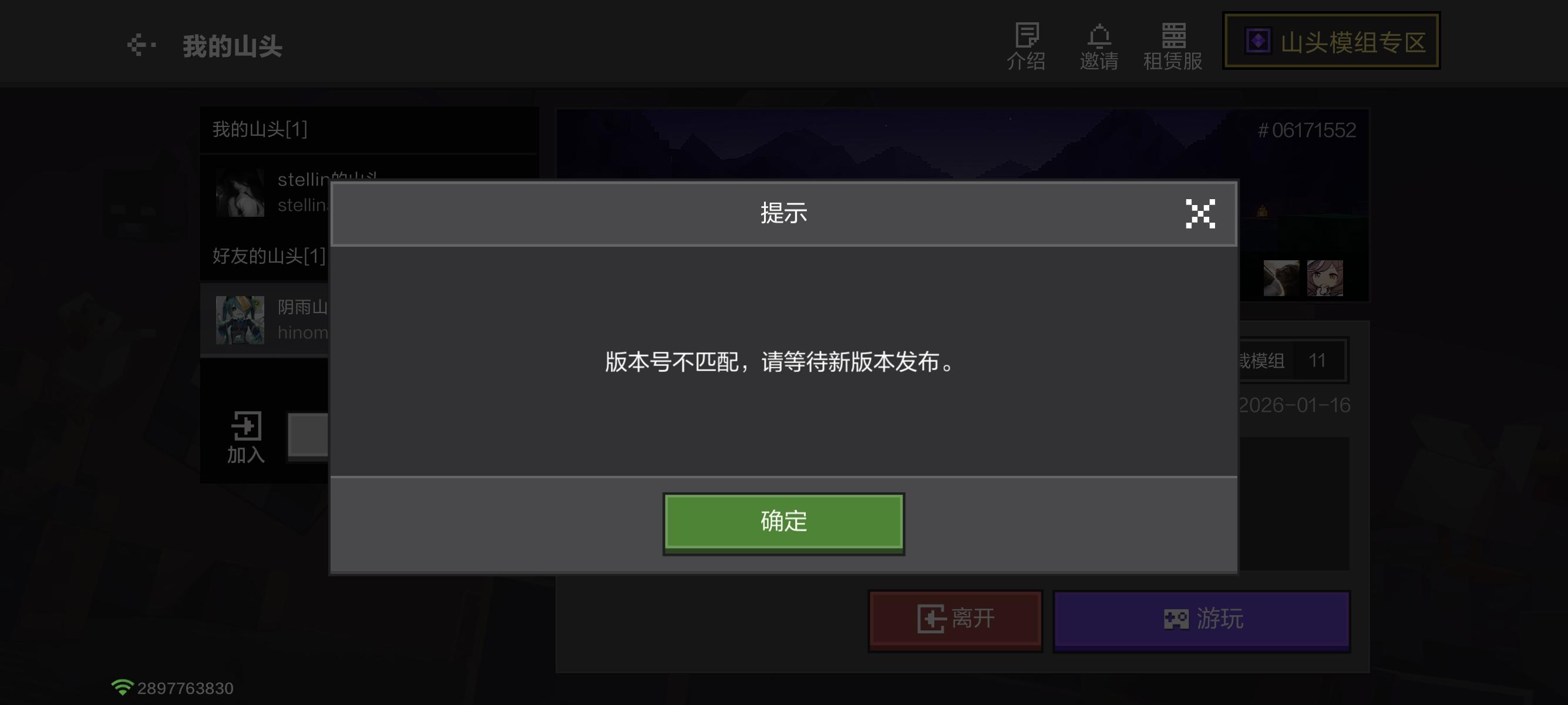 好友的山头进不去,显示版本号不匹配,可又显示已经是最新版了啊,我怕删了重下存档就没了#我的世界移动版