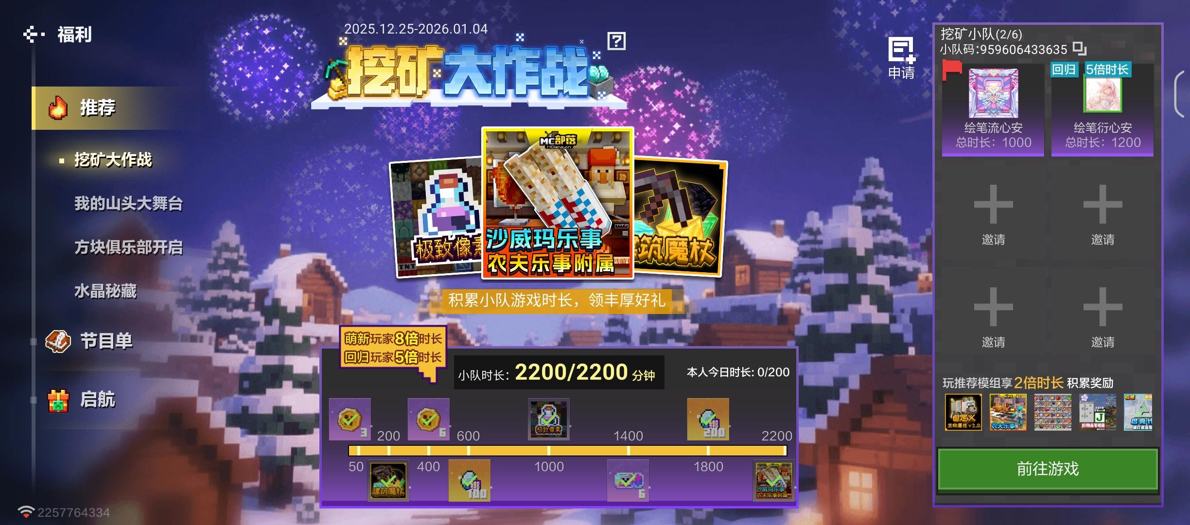 挖矿大作战已开始!我的小队就差你一个了!快来输入小队码【959606433635】,加入我的队伍,拿多重游戏奖励吧!直接复制此文案填入即可。