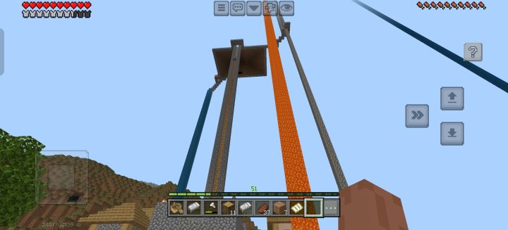静静地在老电脑存放了不知道多久,最新日期显示为2022年,导入手机进去后没有任何印象。不过这些建筑的风格确实像以前的我会干的事,尤其是天上放岩浆当信标。这存档不是我想找的,还得花点功夫去找玩得最久的那个,不知道新版本能不能把之前的损坏地区修复。