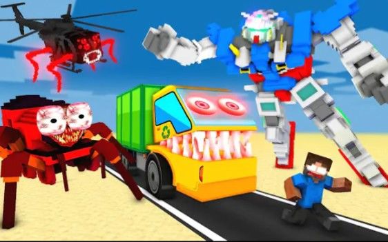 MC怪物学院动画丨机器人变压器 VS 霸天虎卡车和 托马斯火车丨我的世界动画