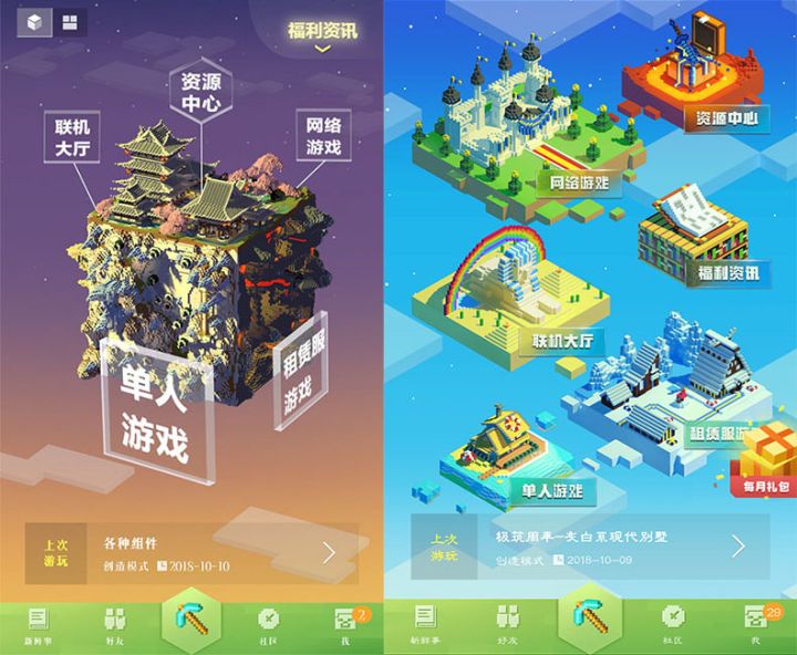 作者:水岩 很多刚接触《我的世界》的冒险家对游戏不太了解,那么今天就跟大家介绍一下《我的世界》手机版怎么操作(>ω・* )ノ因为更新后的界面和之前有所不同,所以冒险家进入手游界面,资源中心、网络游戏、福利资讯、联机大厅、租赁服游戏和单人游戏,几个模块也会有所不同。点击单人模式可以创造单人游戏的世界,关于游戏模式、游戏难度、世界类型可以自由设置。设置之后就可以创建一个属于冒险家自己的世界啦~现在