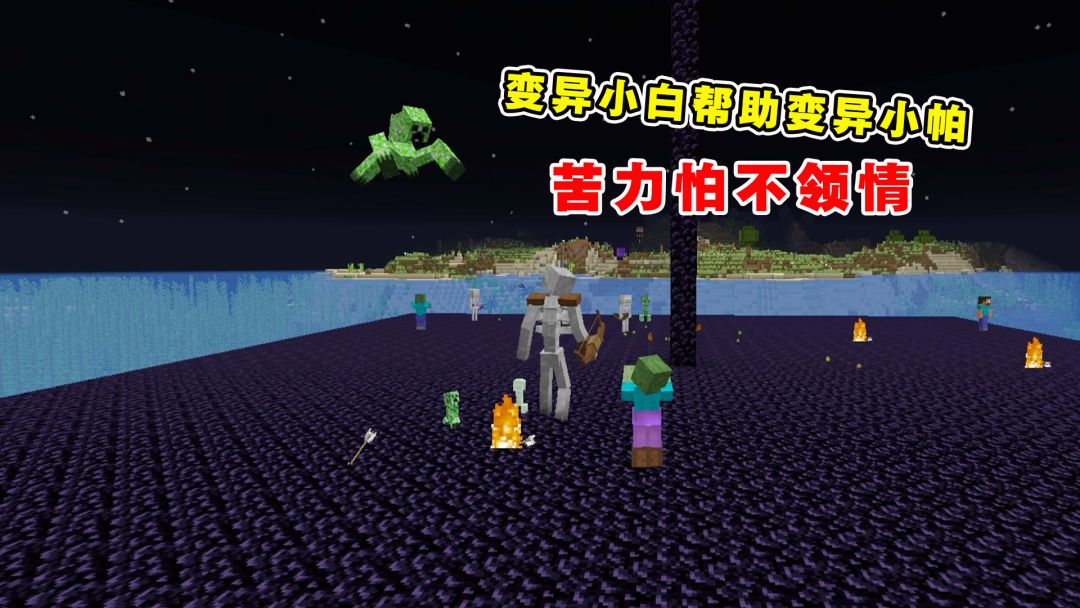 我的世界him传说64:变异小白帮助变异小帕,苦力怕不领情