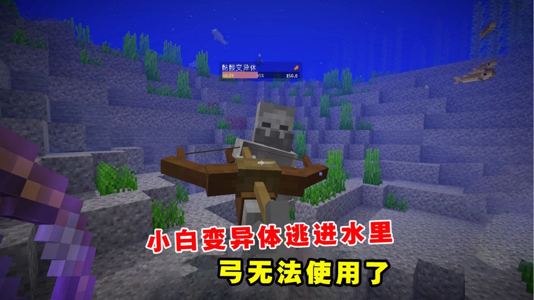 我的世界Him传说63:小白变异体逃进水里,老帅的弓无法使用了