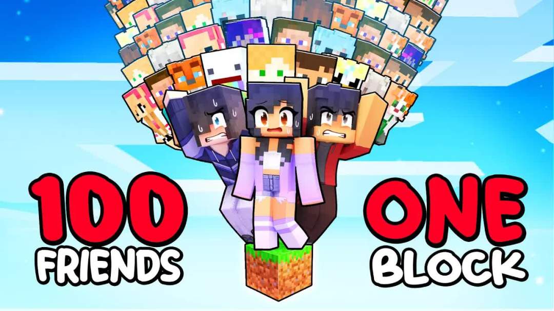 【Aphmau】100 个朋友在 Minecraft 的一个街区!