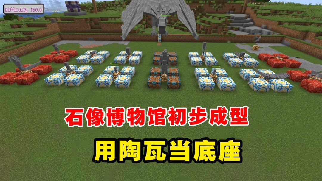 我的世界冰火传说100:石像博物馆初步成型,老帅用陶瓦当底座