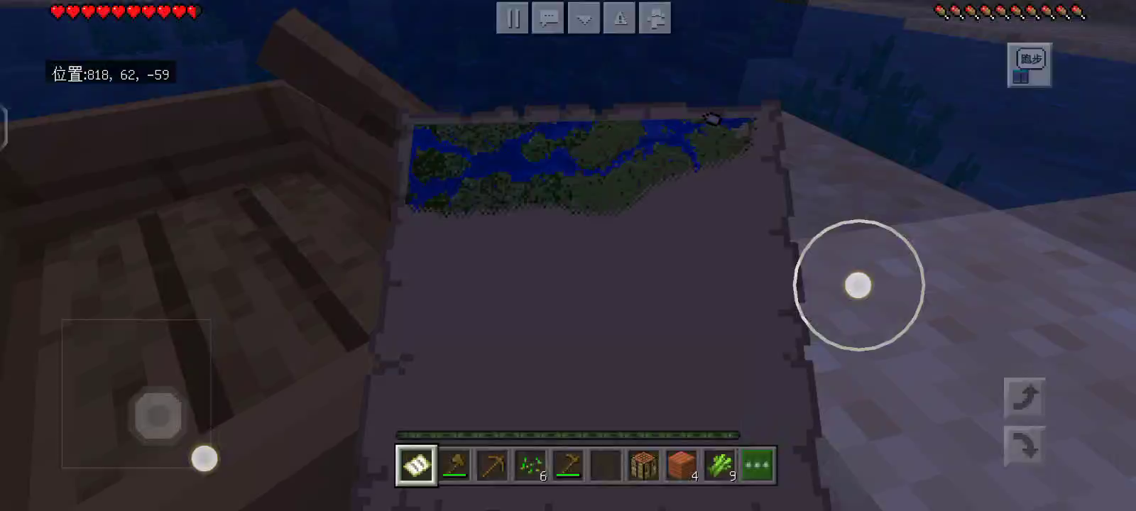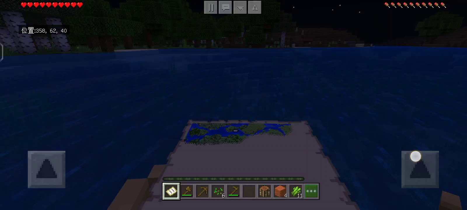 挖了一些木头后,我就做了一张木船,随后就用划船来代替走路,一直想要把整个地图都逛完,以便以后需要用到地图时很方便。