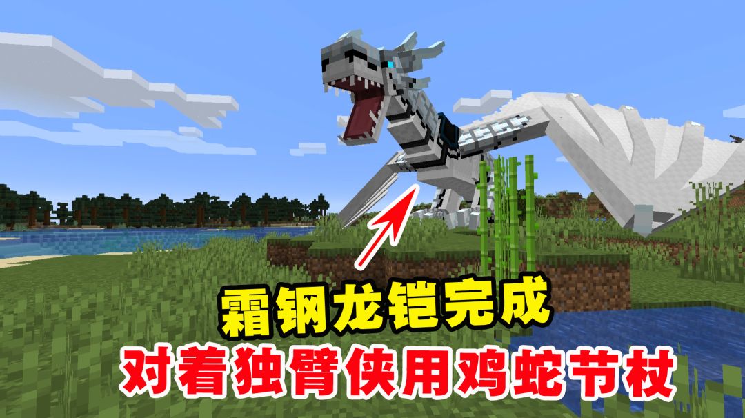 我的世界冰火传说52:霜钢龙铠完成,对着独臂侠使用鸡蛇节杖