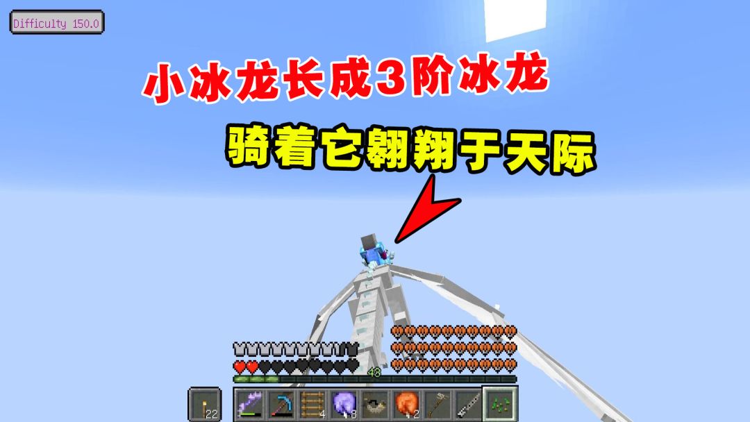 我的世界冰火传说38:小冰龙长成3阶冰龙,老帅骑着它翱翔于天际