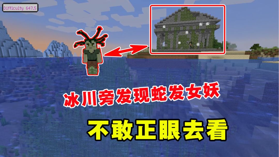 我的世界冰火传说21:冰川旁发现蛇发女妖,老帅不敢正眼去看