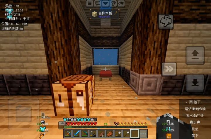 目前已经给基地造好了, 30级附魔台也有了,就是没有时运3的镐子我附到的是精准采集,所以下了一下矿挖了点矿回来,等有了时运再一口气挖了,这期间有两次差点被女巫阴死,就是那种女巫混在一群怪,然后直接扔个毒药,剩半颗心,反正就是差点就死了,现在准备给装备提升一下,然后去下界