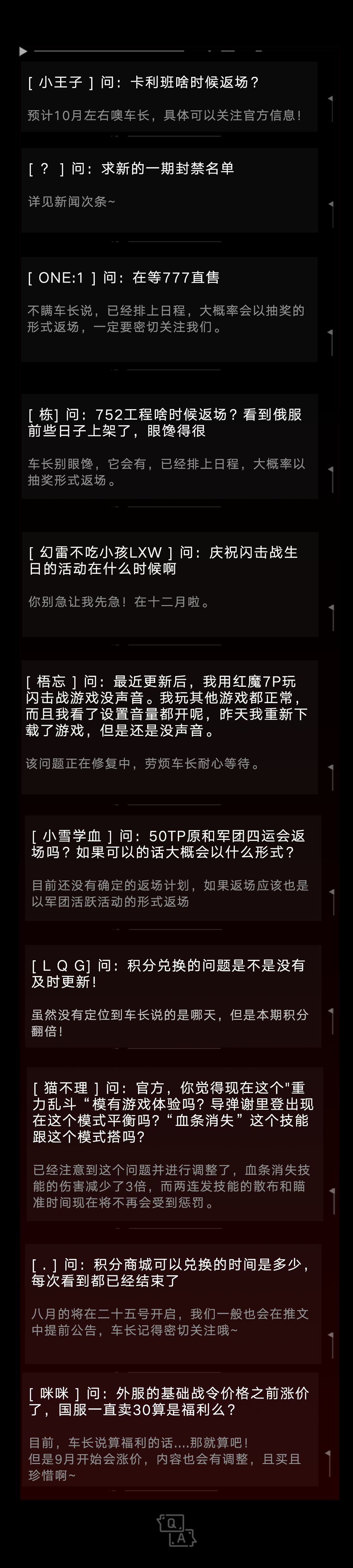 Q&A丨【第191期】官方问答——0810