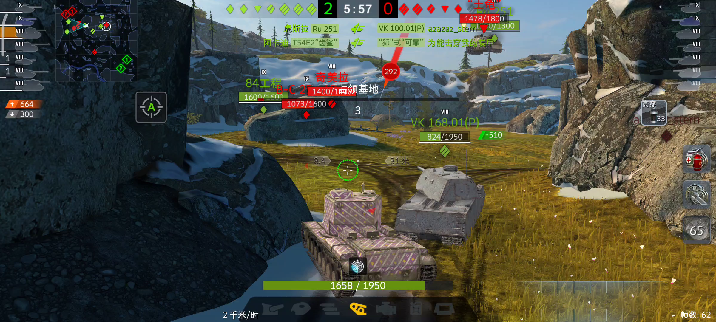 开局去到坦歼位,路过的时候看到对方坦歼,看到白兔想细瞄一下裤裆(过后自己看回放其实应该上高穿或者高爆稳妥一些),对方正好移动打到履带,由于我方康威在前面,我没有好的地方去,想卖侧打两炮,正在犹豫要不要换个地方,看到对方183对炮掉血后在后退,感觉有机会就蹲了一下,打完183后看到我方重坦只剩一个,对面三个重坦,对方六八式蠢蠢欲动,我就想去帮一下,顺利收掉后,征服者没什么机会,在关注对方260,这时候我方康威发起进攻,当时不知道该怎么提醒左边有260,只能往上去压260,预料之中康威被收掉(我还被骂),跟260肉搏的时候运气比较好,第一发炮管没有挡住,看到我方STI在跟对面征服者肉搏,260也离开,征服者被收掉之后看到对方白兔,高伤换了一炮不亏,蟋蟀收掉对方,我就关注眼前两人,想通过卖侧来解决,运气比较好,260也给机会,顺利收掉,在犹豫是卖侧或者换血收掉对方白兔的时候,看到我方蟋蟀被对方中坦收掉之后就选择了后者(怕被对方中坦绕后偷屁股),收掉对方白兔后不确定对方中坦位置,依托地形找了个石头,看到对方中坦在占领A点后,我毫不犹豫选择占领C点,并退到一个可以看到C,和B点的地方(当时想着如果对方从老后面绕我,那我就没办法了),最后发现对方中坦占领B点,正好在我可以射击的地方,一发带走拿下。 个人感觉这局把7000场的理解拉满,全程思路算是清楚,感谢一些辛苦做解说视频的UP主,感谢B站59军,与各位共勉