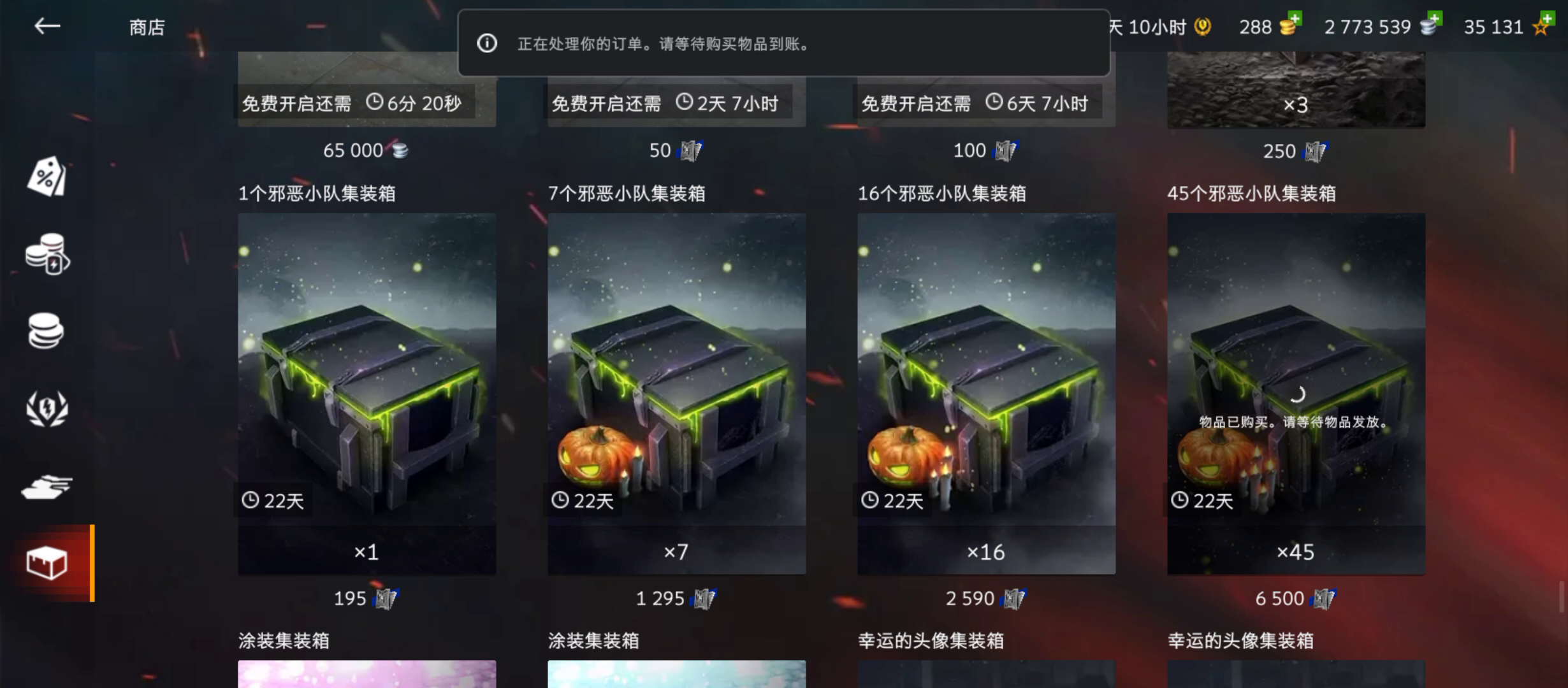 48个箱子,三个头像,一个坦克,加上几个杂物,针不戳。 觉得自己钱多了想浪费的可以买这个箱子。