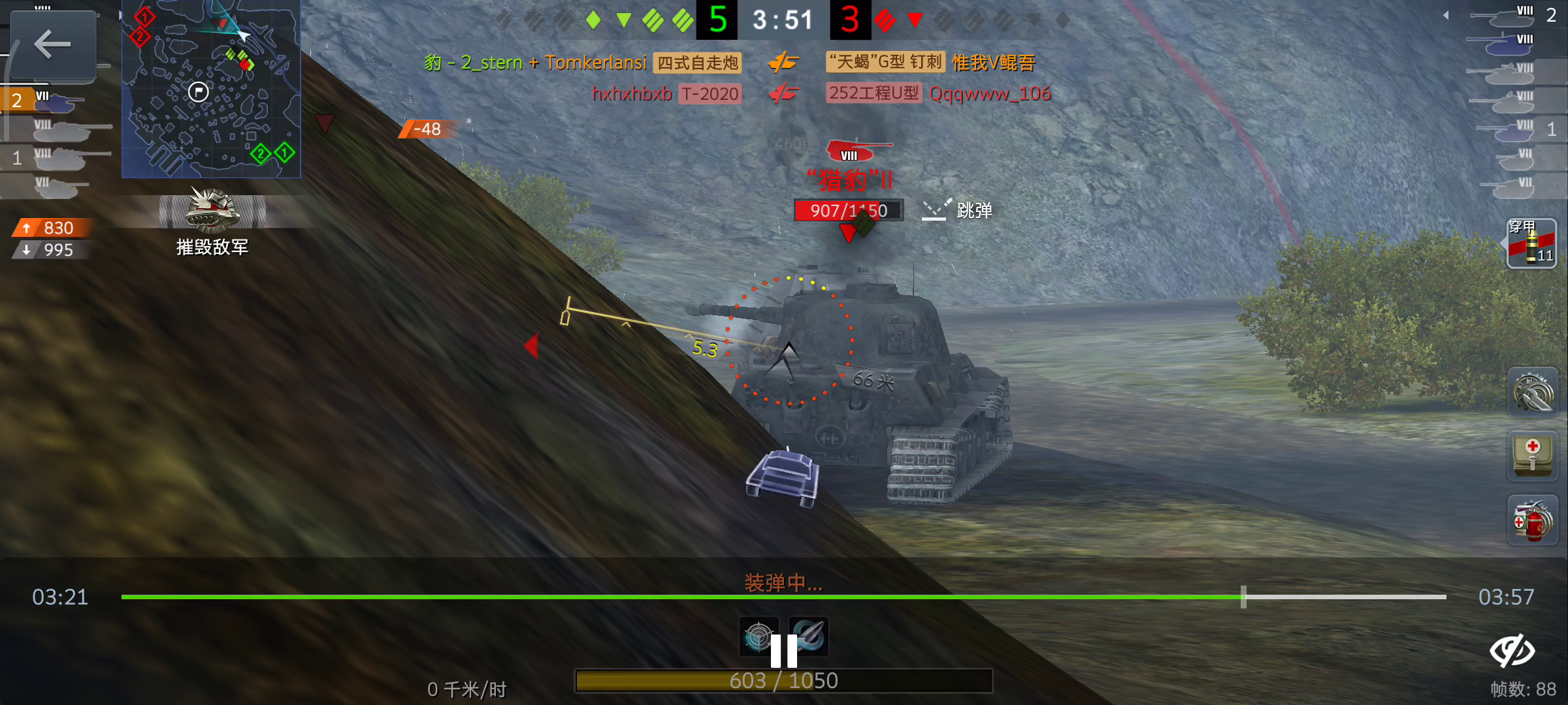 一对多情况下要冷静分析, ①把车头对准没开炮的车(很重要), ②卡住对面位置防绕,贴墙 ③合理利用尸体挡住弱点。