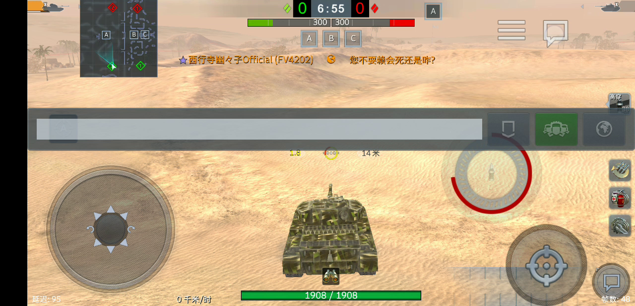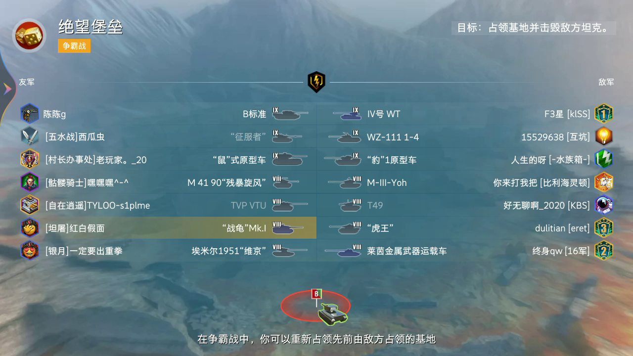 看完后保证你血压飙升(带着熬夜的精神和一名白怪单挑的下场) 我承认我水了一整局。 但明明是对面拉我进训练房要教育我的对不对?(doge) 为什么去中坦线:单挑前这位大神开猎豹 我开碎冰,我们队一个A22MKVII一个我是重坦,对面有老虎,ARL,SU152和米哈游,然后看了看两个轻坦队友连头像都没有(对面三个轻坦还有一个带着4年标一个黄金标),我觉得问题很大,然后就跑去了轻坦线(MKVII也跟过来了)。 在这之前,我给三个TD说过重坦线打不过赶紧溜,然后那俩猎豹(还有一个白板短88)非要去重坦线,结果秒送。 然后这位大神就不愿意了,开始发表感言。 当我赶到轻坦线的时候,我们家俩轻坦已经大残了,对面三个轻坦俩满血一个半血。 然后我和MKVII就之前冲上去玩骑砍,对面三个LT也没了(断腿断到死,点名表扬MKVII)