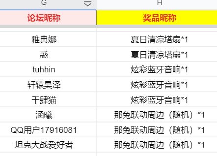大家好,感谢大家积极的参与本次活动,现将活动中奖名单公布如下↓,没中奖的友友请不要气馁,多关注论坛最新活动公告,祝大家游戏愉快。恭喜以上玩家获得活动奖品,请于8月15日10:00之前主动添加进并填写问卷登记。https://docs.qq.com/form/page/DSlBuQ2FZRkdEdnJF提交问卷后【加入兑奖:957220290】我们会根据留言时间进行处理,请关注群里通知和私信。