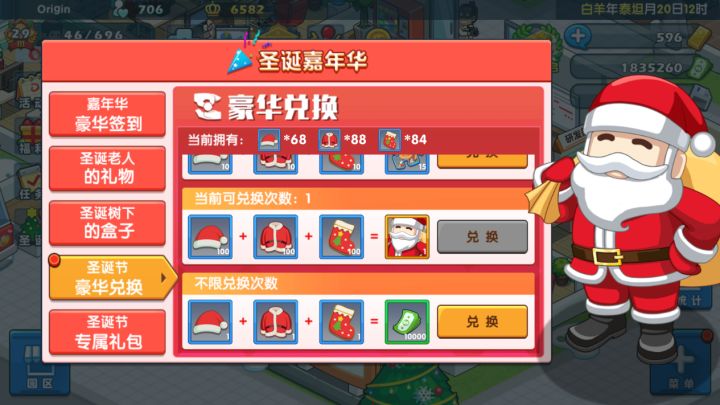 大家好,我是二区程序天堂的Origin~圣诞活动我已经肝完了,有图为证!开福袋,摇圣诞树都完成了,说实话还是很良心的,材料还差一点点就能换圣诞老人了,预计之后几天再完成一下每日活动就OK了!关于肝活动,体力会不会受限的问题,我不是氪金大佬,我只是月卡党……开局送的各种食物,以及商店前十次刷新囤的食物,足够我肝完圣诞活动!所以完全不用担心体力不够使!圣诞题材游戏配方,保底让你拿到90分以上的金