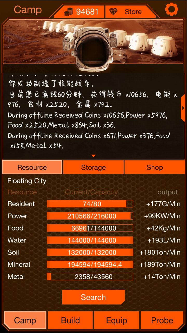 梅意西!买了个挂机6小时的!最后boss真的难打,命中率太低,还好加特林有过几次4000左右的高伤害最后4秒打过了第5关 boss,结束了火星救援,不过有点遗憾中途手贱连点两下返回,死了几次把救到手的宇航员搞没了88,各位火星救援的盆友!