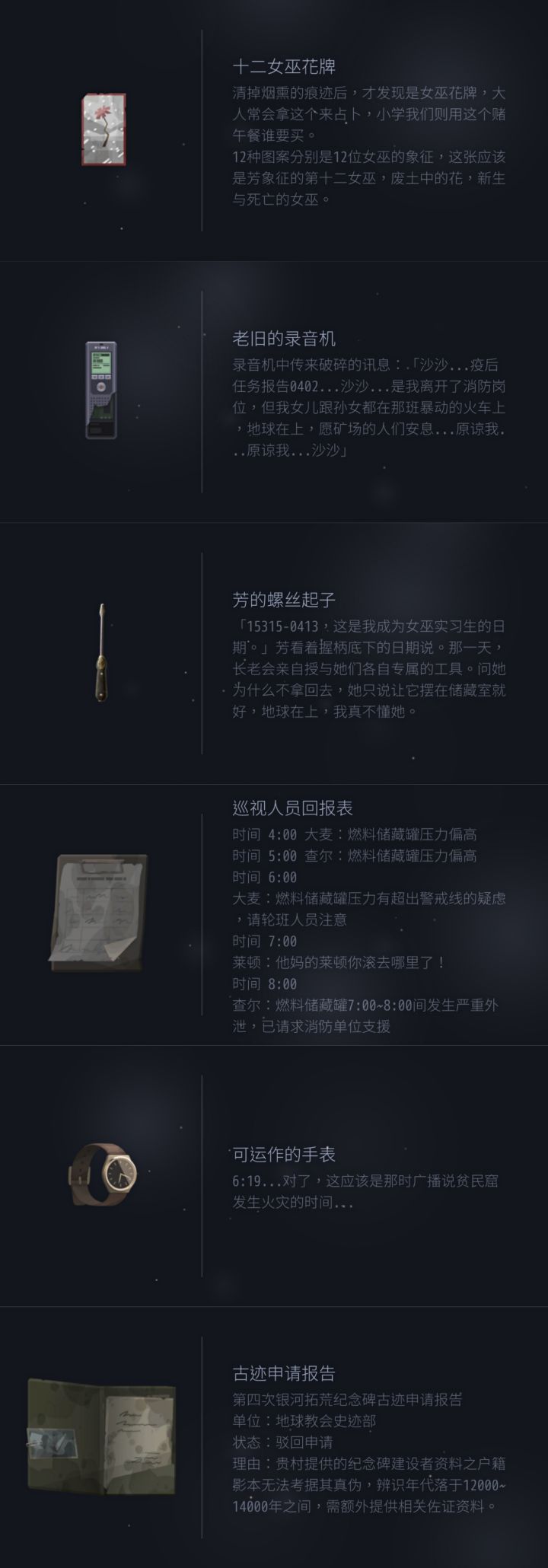 tql,能把物品信息截图整理出来真是满足了我这样的懒人来回忆一下剧情。自己的地图能有用真是太好了……(话说自己摸鱼翻帖能摸到这里真是没谁了(:3_ヽ)_)