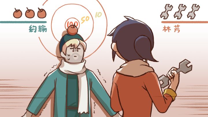 ===== 投票结果公佈 =====感谢大家热烈参与,林芳的假期是这样度过的:难得的娱乐时光,怎能不带上约翰一起呢?谢谢大家热烈支持本次的投票活动!请期待下一次的【你投票,我画】单元~===== 以下投票已結束 =====最近火箭製作的状况不错,久违能休息的林芳,在仓库找到几样有趣的物件,(投票已結束)你觉得她应该拿起哪个来玩?A: 雨伞B: 高尔夫球竿C: 扳手D: 骨头