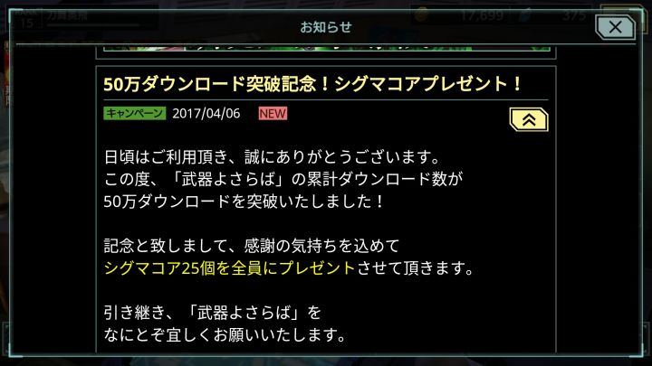 祝 武器再见 下载突破五十万 给予玩家抽卡用钻石