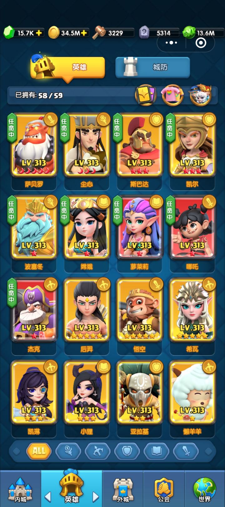 首先的话 物理系首选 剑圣 木兰(没有木兰哪吒过度)法术系尘心(是平民低氪最容易入手)貂蝉 海王 辅助的话没有8星小狸的话(带蔡萝莉跟嫦娥)懒洋洋也不错 双召唤 优选角斗士(万金油) 推图凯尔(提供召唤物双抗35%) 然后没8星之前可以鲁班或者骑士过度射手没11星之前金色(优选船长万金油 物理系美杜莎打控跟物理增伤)防御塔物理系推图 财富+冰霜 领地 狗头 艾琳都行不要凯尔了