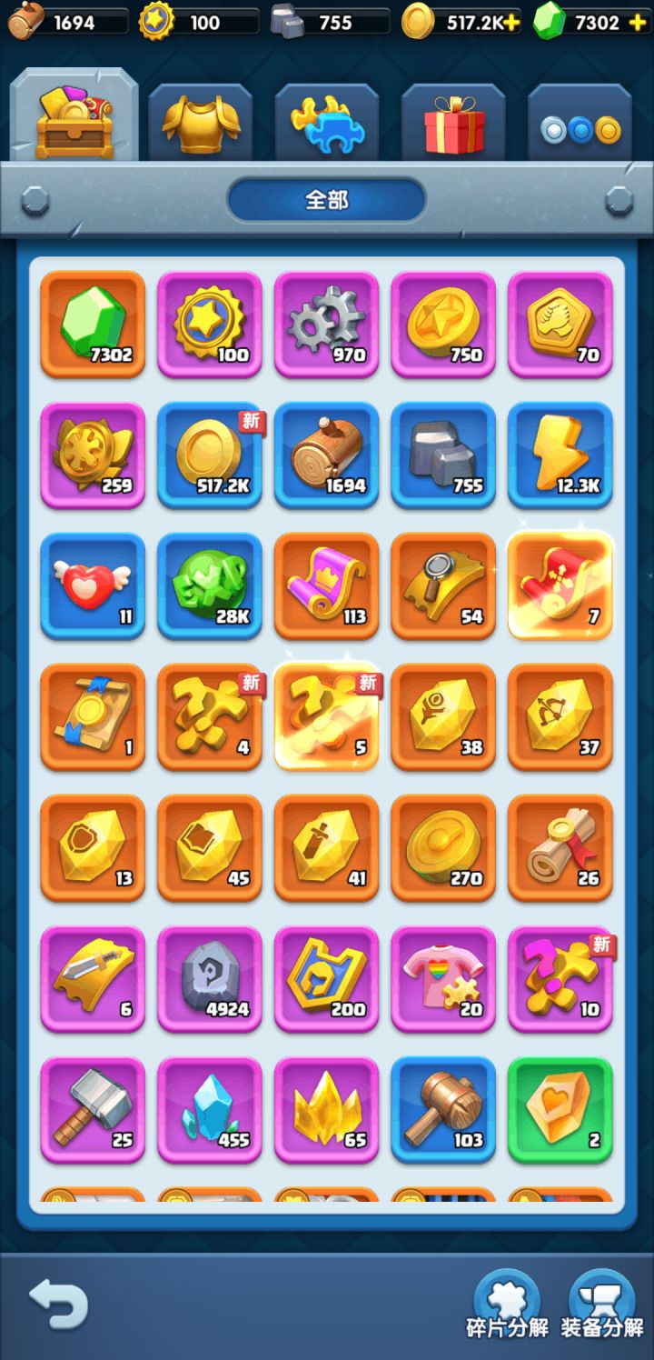 更新一个小号,主打一分不充,苟住,资源绝不浪费第一天钻石消耗点:1.商城打折25💎的召唤卷,信物卷2.8折10个信物卷必须秒3.缝8礼包都买,屯屯屯4.前期缺金币,买买买6.前期开位置 快速推图 直接买锤子(可以不买,就是节奏慢点)7.挂机 直接拉满 (等级影响推图,正常情况直接拉满,如果后面钻石不够,可以只拉200钻以前的)今日零氪汇报截图如下:召唤卷屯了113.信物屯了5
