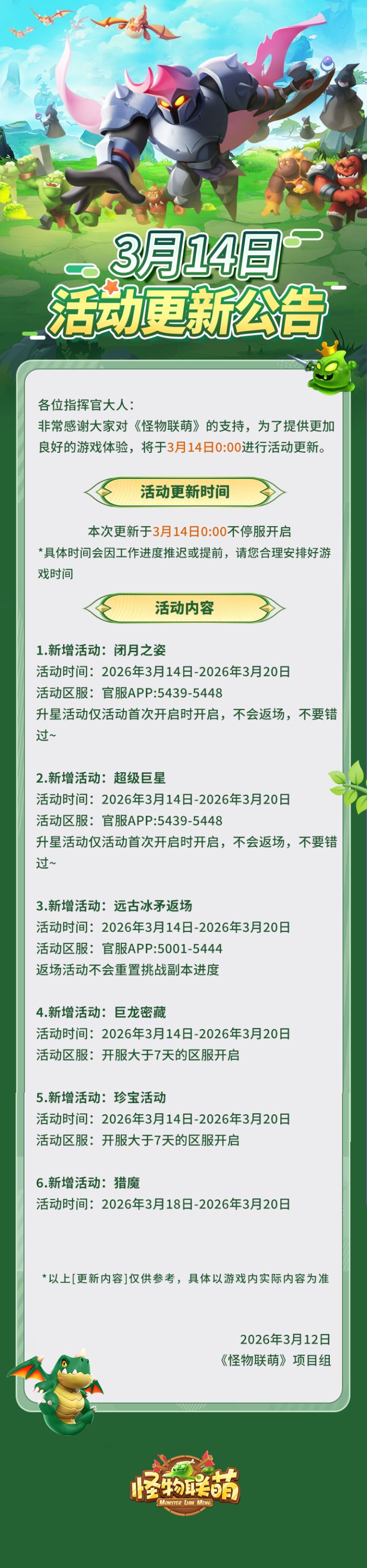 3月14日活动更新公告