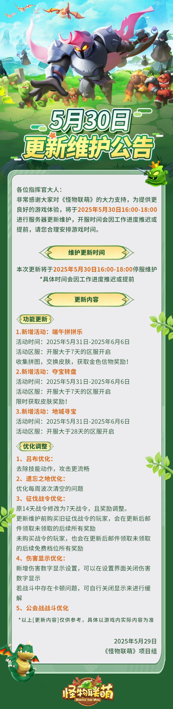 《怪物联萌》6月20日更新维护公告