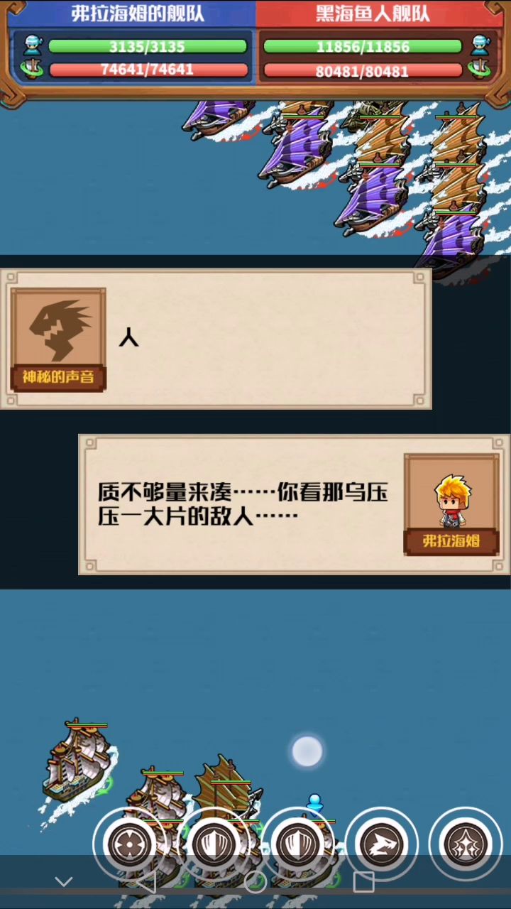 最终战黑海鱼人舰队,按视频摆阵,龟炮(炮舱不上船员)能抗所以放在旗舰这边,另外一个胜利吸引火力。剩余四个胜利(贝洛斯福 达琪亚娜 约翰 弗朗西斯)成功抱团,无需章鱼晕眩。