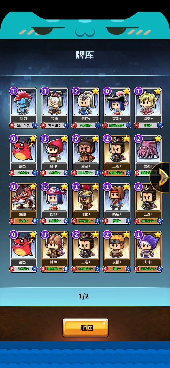 玩了一万六千多回合,这卡牌游戏非常杀时间,这局不算完美组合卡牌,将就着发发。 好玩的点在于,就算玩了几年了,还是需要靠sl大法,基本上两次开局才能通关一次,比较考验抽卡和抽秘器。 不是很喜欢毒流,太拖回合,就喜欢暴力力量流,简单速推,曾经最终boss4回合KO,卡牌基本上压制在20张去通关。 玩了那么多回合,就见过两次补习之书这个秘器,挺有趣的道具,最喜欢圆桌骑士和罗顿,用的费最少,受益最高攻防一体,几乎可以从第一关用到最后关都是必出的卡牌。