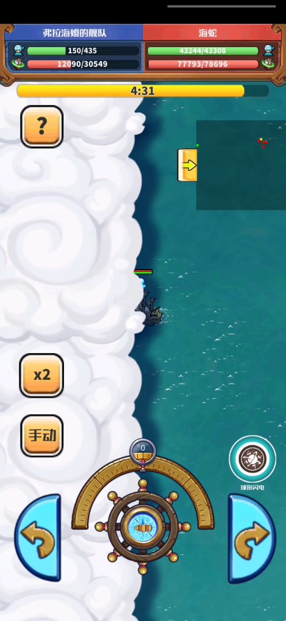 虽然视频中沉船了,但是思路可以参考。适用于比你慢的船队和海蛇,打章鱼可以开远等电球cd再回来。 ps:用不了技能是因为敌人正在用,不能一起用是bug