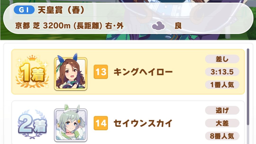圣王本身c长距离,随便继承一点长距离就能b,四点以上能上a,加上天皇赏春最大难点在于3200的距离,大部分npc都没这个耐力最后会放慢速度,你只要600耐跑差应该不难,而且回复的技能能超过你最大的耐,就像怪猎吃烤肉。最后圣王不是必须参加天皇赏春,基本养短距离马的话也不会特意参加,所以你在养短跑?