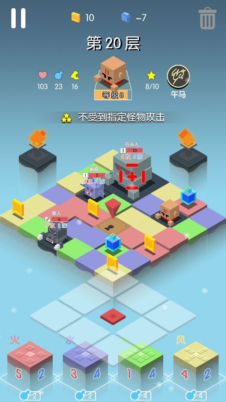 勇者的身上没有镶满晶石的法杖,没有削铁如泥的宝剑,也没有花花绿绿的防具和鞋。在这方块形的世界里,它只能赤手空拳,沿着规划好的路径一路前进。《勇者别方》是一款Rouguelike冒险解谜游戏。当然了,有勇者就一定会有怪物——勇者必须不断前进,而怪物则在他前进的道路上忠实地扮演绊脚石的角色,方寸间的地图中,怪物们会随机出现,只有打败它们才能拿到钥匙进入下一关卡。没有武器的勇者怎么出手?原来,“地板