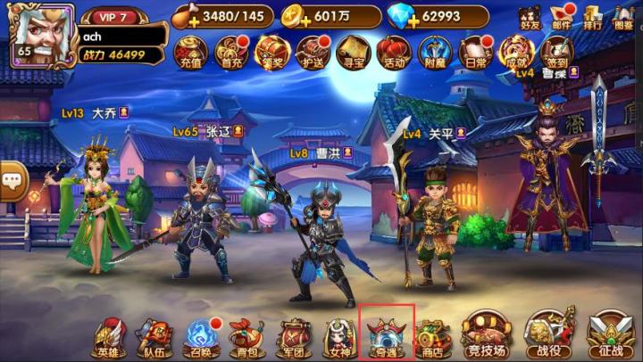 末将潘凤!参见各位主公!游戏中获得武将的途径,除了各别关卡的掉落以及商店高价出售等途径外,很多时候都得通过抽卡获得。可是抽卡一则需要消耗不菲的钻石或铜钱,而是很难直接拿到自己想要的武将。那么问题来了,如何更高效地获得自己喜欢的武将呢?奇遇商店位于主城正下方的位置,在这里可以很轻松地买到自己喜欢的武将。 既然是奇遇商店,商品当然是武将。 每次会上架6名武将,其次商品每天凌晨3点的时候刷新,所