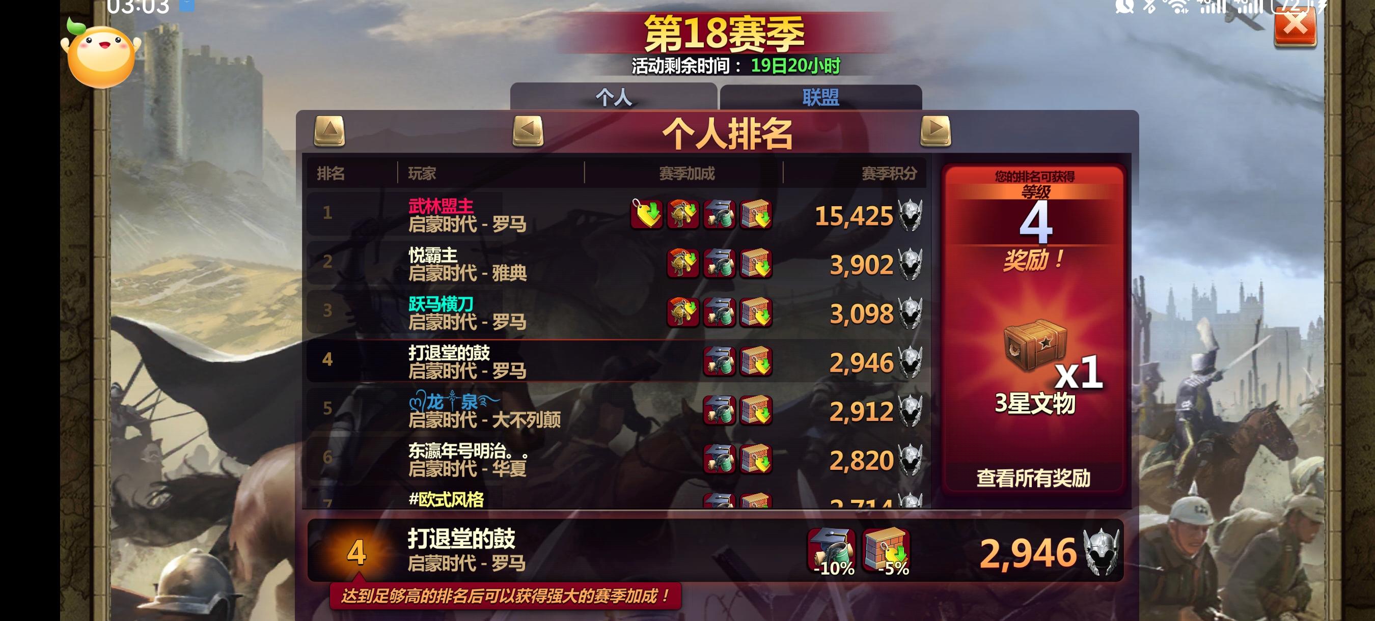 优先来个太空的大佬吧!活跃的也行盟战已经添油战术开了所谓“添油战术”就是不在乎胜率只在乎开战频率!硬熬!但是来个太空的话,那么盟战胜率能起来一大半!真的能先来个太空的大佬巨好!不是太空也行!只要活跃!不在乎我们盟的“添油战术”即可!#战争与文明