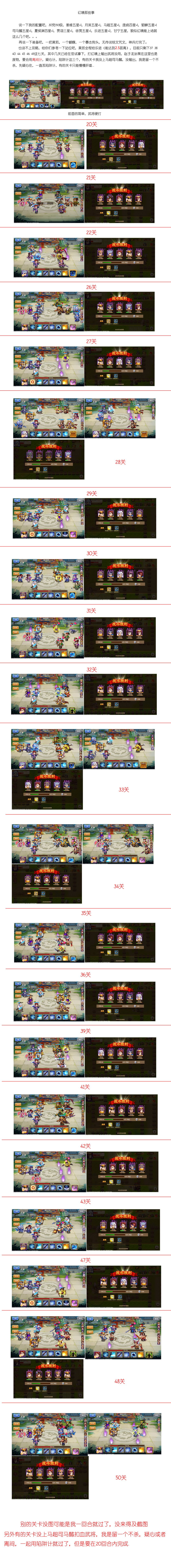 (等级不限,无套装需求) 核心要求: 主力输出→司马懿3☆+专属/4☆ 主要控制→姜维4☆+2,黄月英4☆+专属 配合→夏侯渊4☆+专属加任意弓将/任意弓将*2 (夏侯渊不能开场放技能的话用离间计代替) 长蛇阵+1,策略选离间、陷阱、免击 金马给主力输出外的其他人 1-48关: 徐晃曹仁放技能夏侯渊给曹仁上免击计做一轮控,姜维做另一轮控,诸葛大水作主输出[图一],等到后续关卡面板越来越高感觉诸葛