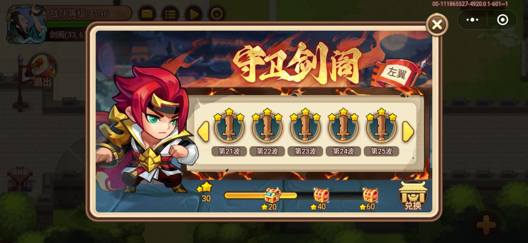 剑阁21-30:不到200级,平民玩法,月套姜维先手控制,月套冷却技能;诸葛主输出,基本一个技能秒一个;其他用陷阱,截止目前还比较顺利。