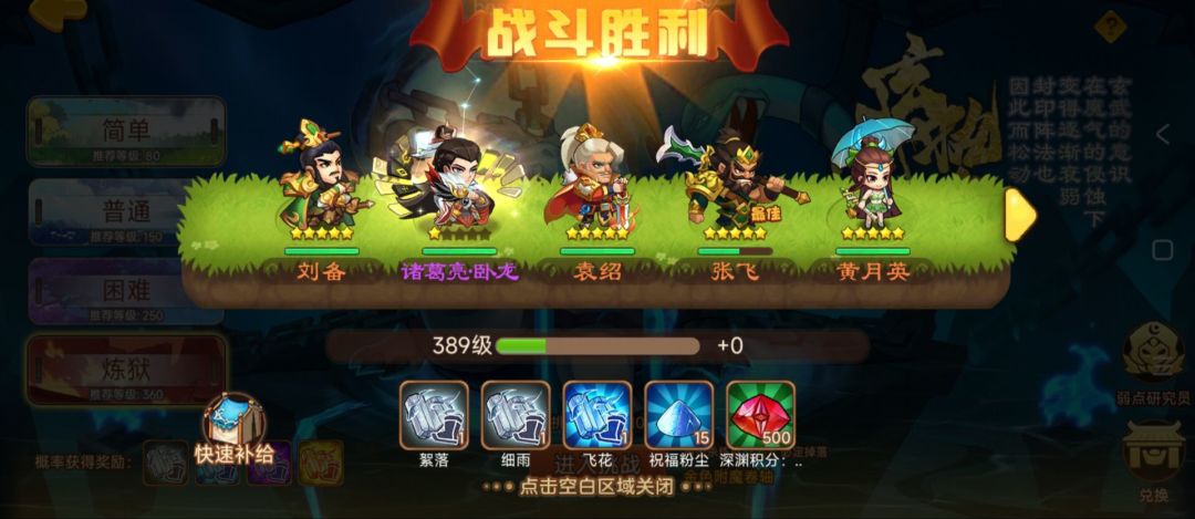 第五回合:如果你此时顺利的话,敌方最后五个动物也上场了,此时徐晃先手开大,其他几个武将招降大熊(但我觉得大熊很脆),诸葛大水