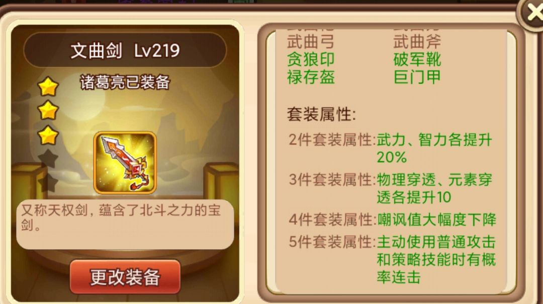 游戏目前已经出现了多种套装,哪些套装较为实用?人民币套装怎么搭配性价比最高?套装一定比普通装备强么? 一、七星套 七星套总体性能非常优良,套装属性包含属性提升,穿透,降嘲讽和连击的效果。兼顾了输出和生存能力。正常来说,因为七星套的戒指和头盔升级加的都是武力,普遍作为武力输出将使用。由于正常平A不多,且武力将较为依赖暴击率,所以可以选择七星4件套+穿云冠的搭配。 除了武力将穿戴以外,还有一种玩法就