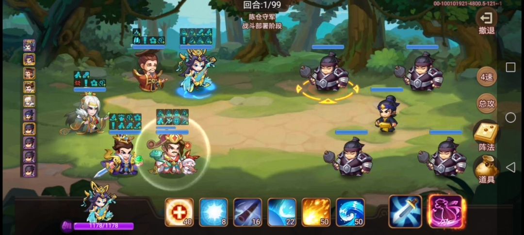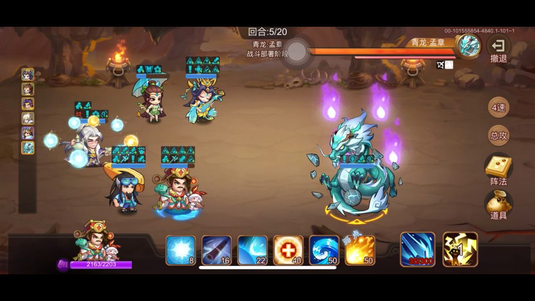 第一回合用武力将先打死几个小怪,其它4个用普攻给曹植叠被动,第二回合输出,一套搞定
