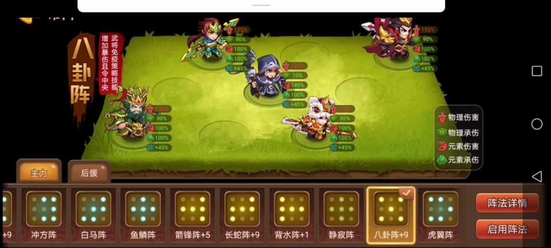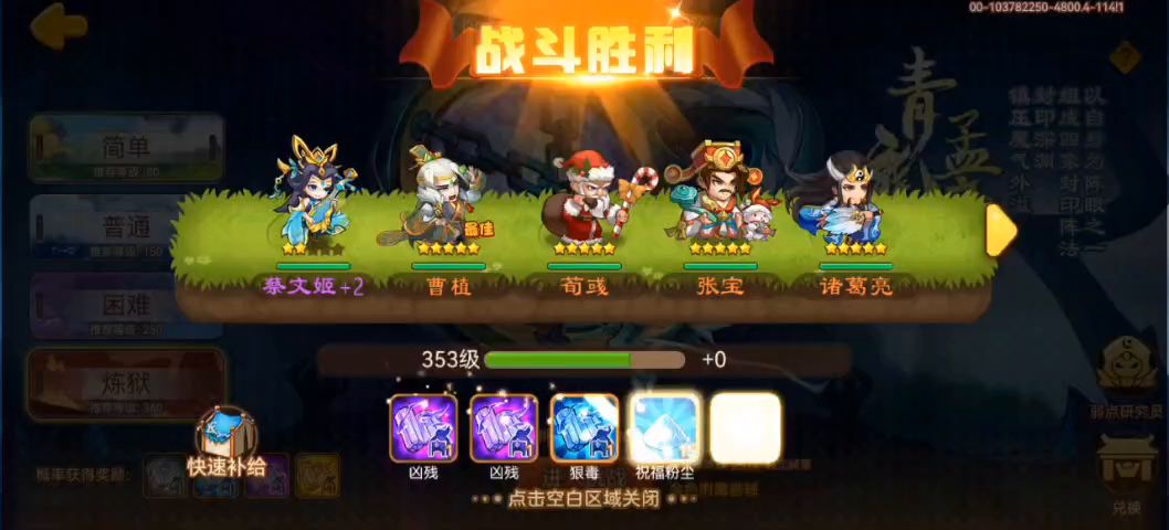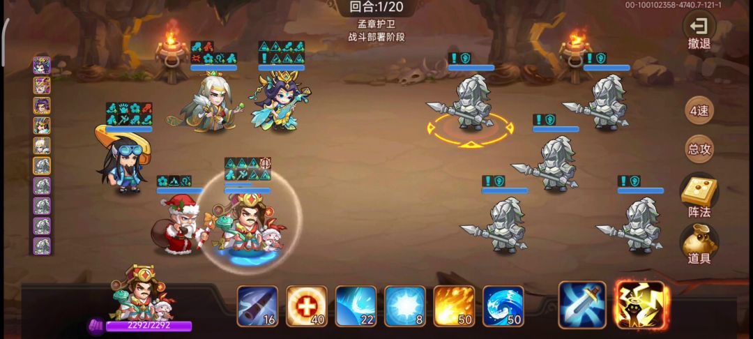 这次北伐100关boss是确实恶心的。双倍体力加自带幽风属性,让这次白嫖刘备的难度增加了😋。不过再难也有大佬出攻略带我们打。作为折腾了两天终于打过去了的人,我觉得有必要分享一下经验。当然,只是对于贫民来说。氪佬不会这么艰辛。 首先直接抄前面大佬的作业,一队送死队,阵容马超、袁术、司马懿、郭嘉,主要是这四个搭配两鬼套和紫金鬼面使用,做到输出至少两回合。另外一个武将重要性不是必备,阵法也不是重点,我用