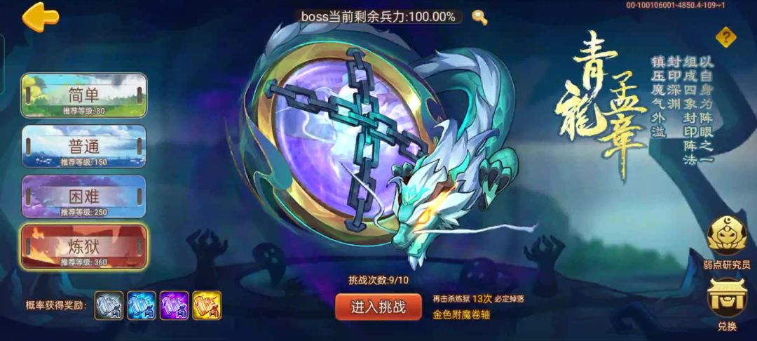 这次不是打的最好的一次,中间没封住被破阵,就算这样也能稳一票过了。曹植鞋附魔流星,武器开刃封穴,土伤害184%,概率79%,菜鸡开刃封穴概率75%。