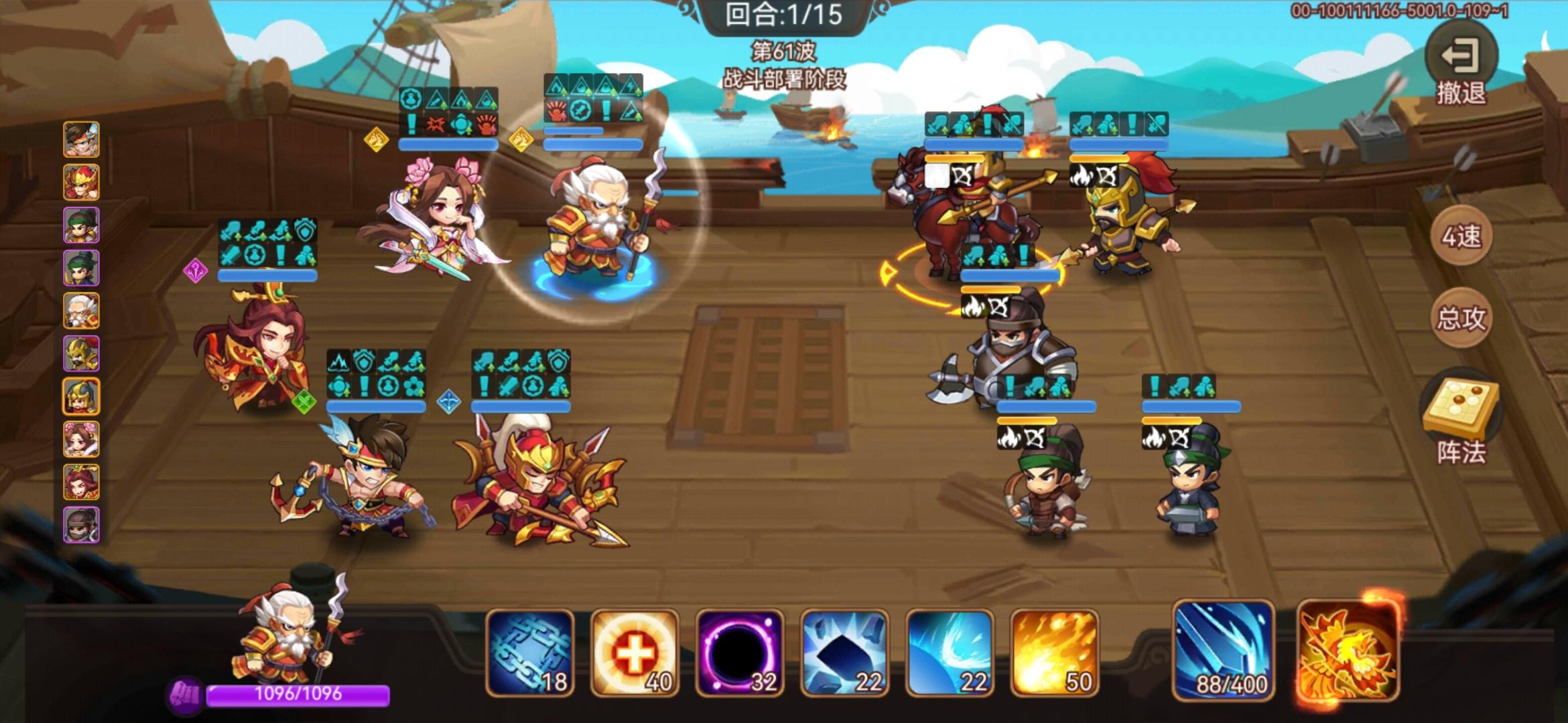 小刘月套风遁 黄忠4兽+穿云爆伤,25魏国附魔+封喉 诸葛七星5件+攻势 姜维血量最低,风遁+攻势+轮回 阿斗血量最高,风套+百封弓 曹阿瞒不吃开刃,其他4位攻势可以叠加。 最好一次16回合搞定,看小刘和黄忠连击。 这个视频小刘拉垮不回CD[表情_捂脸哭][表情_捂脸哭] 前3回合打法很重要,杀大曹仁时注意给黄忠免策,和姜维免策,避免曹阿瞒破阵。后续死人了可以用诸葛技能回阵!