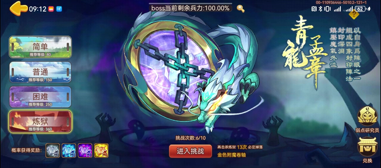 意思这个穷奇最后难度的这个Boss,不管是隐藏的还是打穷奇都特别难整是吧?隐藏boss就又又又又和上次的厕所董卓一样了嘛,一下秒不掉,下下秒不掉!boss穷奇也是一样,开局一个盾,打破了以后自动成长盾!直接盾都破不了。哦嚯嚯嚯,这不得榜一二那种,一下秒天秒地的来?
